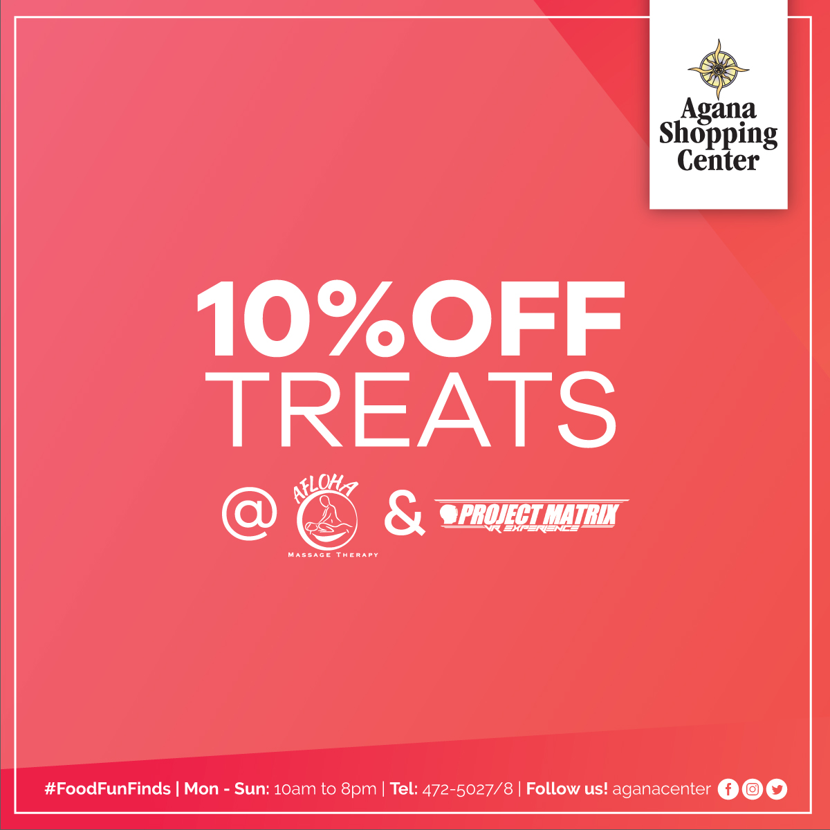 Enjoy a cross promotion with Afloha & Project Matrix! Get a 30 minute & above treatment at Afloha & you will automatically get a 10% off discount at Project Matrix and vice versa when you purchase $20 or more at Project Matrix you will get a 10% discount at Afloha! Promo started this January 2019 & it will end on March 31, 2019.