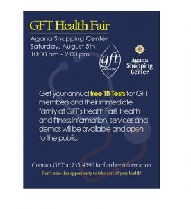 Get your annual free TB Test for GFT members and their immediate family at GFT's Health Fair! Health and fitness information, services and demos will be available and open to the public! Don't miss this opportunity to take care of your health!